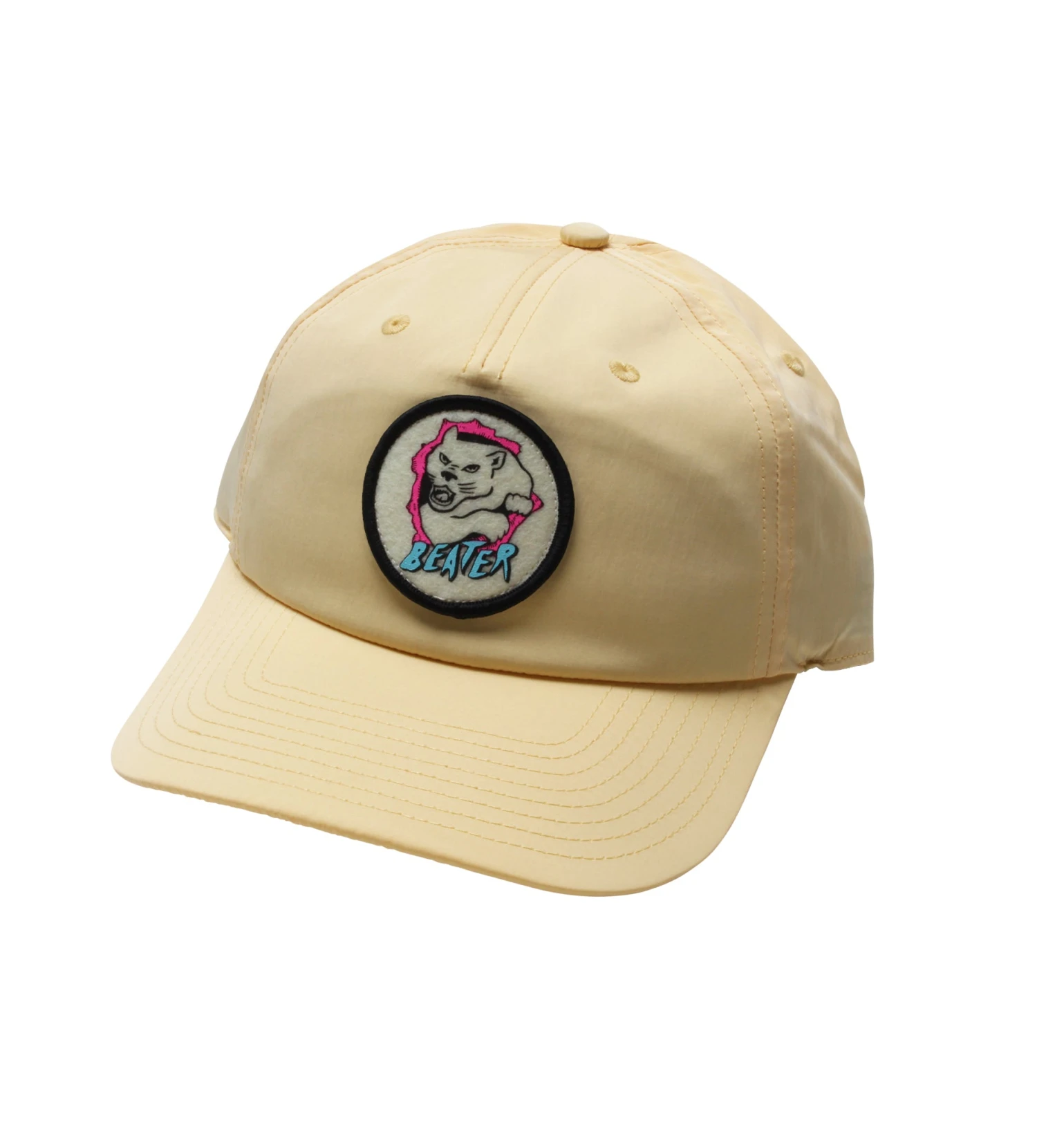 Beater® Rip patch on a 5-panel hat made of water resistant nylon with snap back. One size fits most.